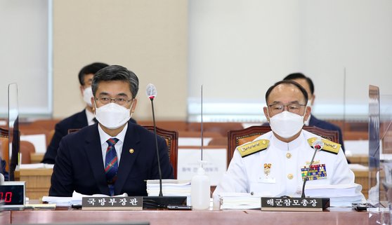 서욱 국방부 장관이 20일 오전 서울 여의도 국회에서 열린 국방위원회 전체회의에서 부석종 해군참모총장과 해군 성추행 사망사건 관련 질의답변을 준비하고 있다. 뉴스1 |