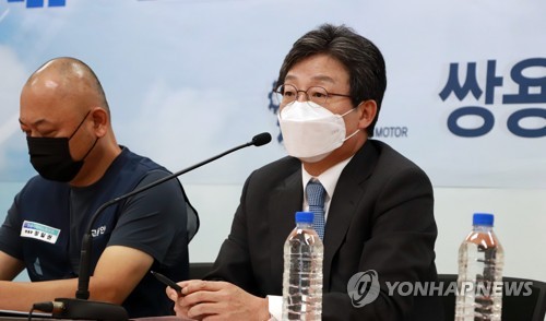 국민의힘 대권주자인 유승민 전 의원이 19일 경기도 쌍용자동차 평택공장에서 쌍용차 노조원들과 만나 발언하고 있다. [유승민 캠프 제공. 재판매 및 DB 금지] |