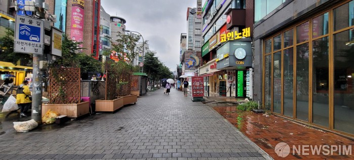 거리에 즐비한 식당과 카페에도 혼자 오거나 2명씩 짝을 이룬 손님이 대부분이었다. 3명 이상 모임은 보이지 않았다. 곳곳에는 불을 끄고 문을 닫거나 '임대문의'를 내걸고 폐업한 상가가 눈에 띄었다.