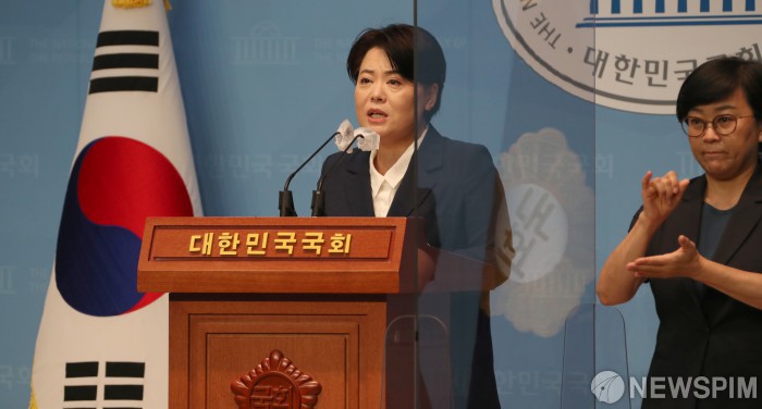 [서울=뉴스핌] 최상수 기자 = 국민권익위원회 조사에서 부동산 관련 불법 의혹이 제기된 국민의힘 윤희숙 의원이 25일 서울 여의도 국회 소통관에서 기자회견을 하고 있다. 윤 의원은 "국회의원직을 서초갑 지역구민과 국민들께 돌려드리겠다"며 의원직 사퇴하고 "이 시간부로 대선후보 경선을 향한 여정을 멈추겠다"며 대선 경선 후보직도 사퇴하겠다고 밝혔다. 2021.08.25 kilroy023@newspim.com