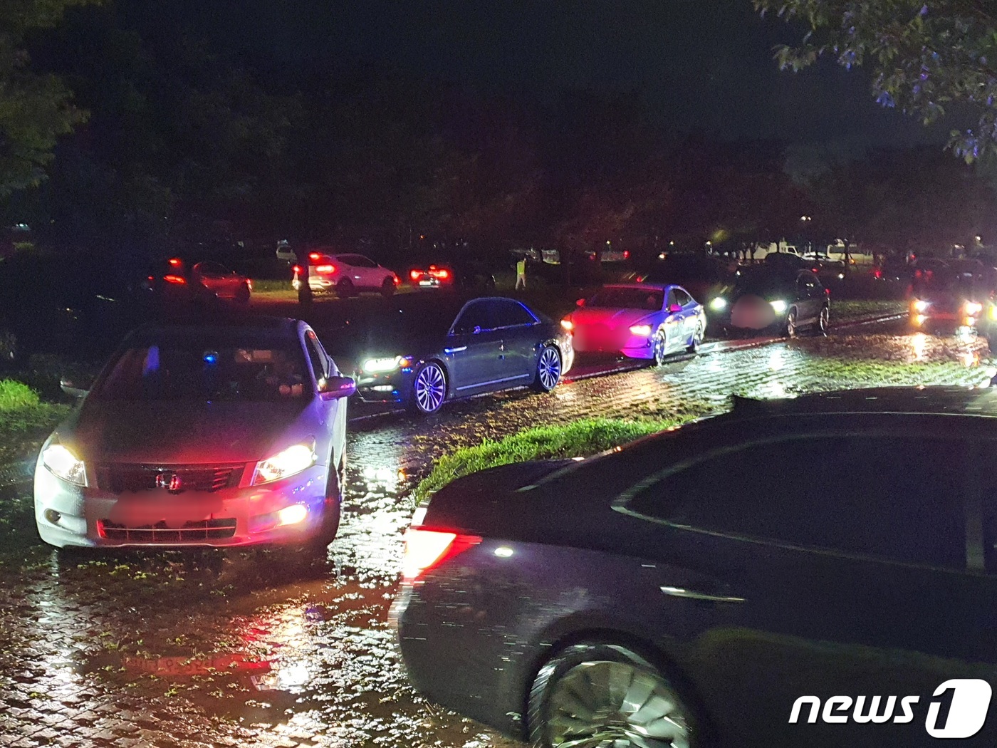 (부산=뉴스1) 노경민 기자 = 25일 오후 부산 사상구 삼락생태공원 제2주차장에서 자영업자들이 차량시위를 하고 있다. 2021.8.25/뉴스1