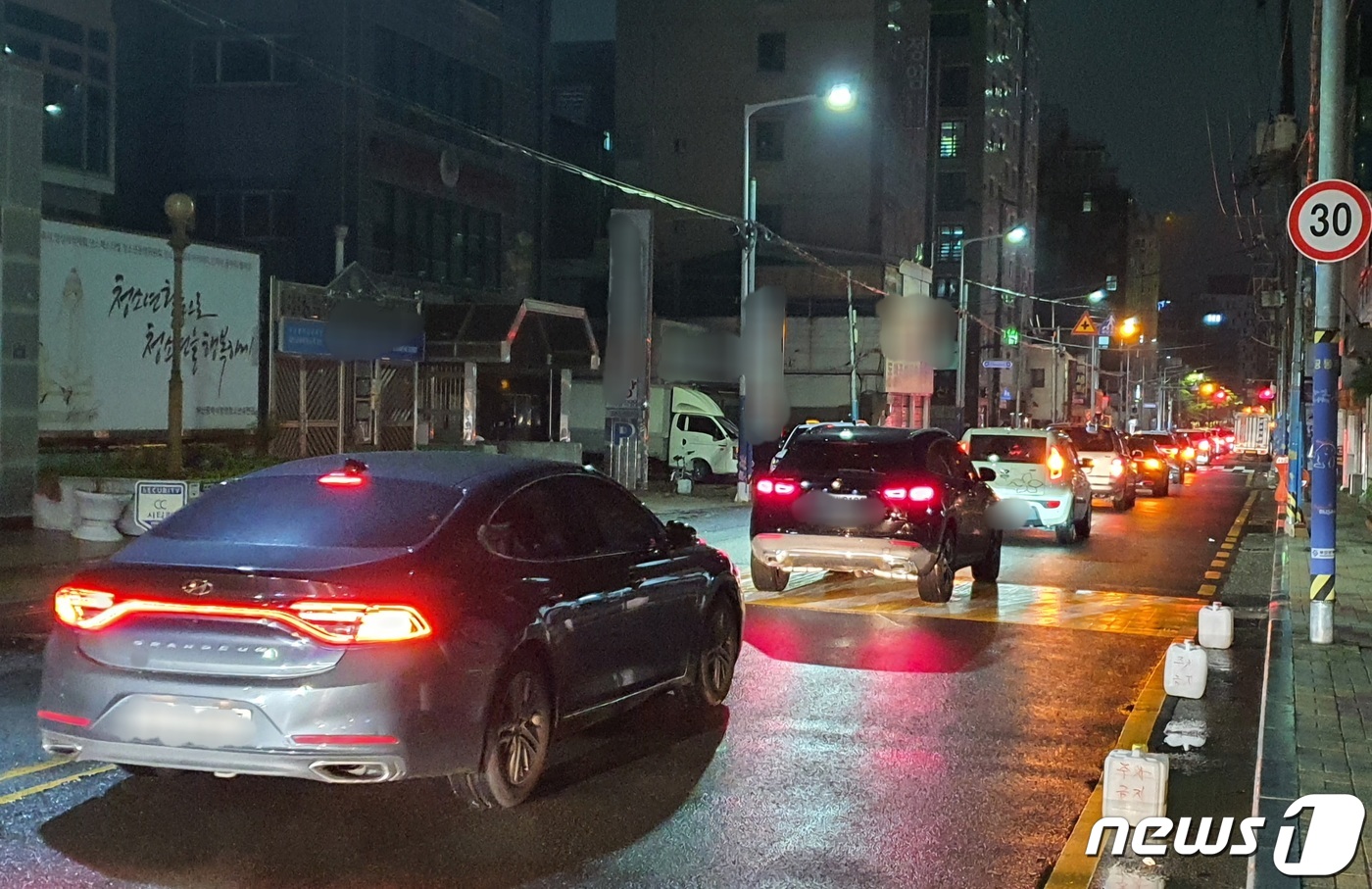 (부산=뉴스1) 노경민 기자 = 26일 오전 1시께 전날 밤부터 대규모 차량시위에 나선 전국 자영업자들이 마지막 집결지인 부산 연제구 부산시청으로 향하고 있다. 이번 부산 차량시위에 참가한 자영업자 차량은 경찰 추산 74대로 파악됐다. 2021.8.26/뉴스1