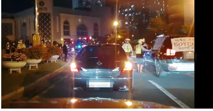 26일 밤 창원광장서 차량시위를 벌이고 있다. 자영업자 비대위 유튜브 영상 캡처 |