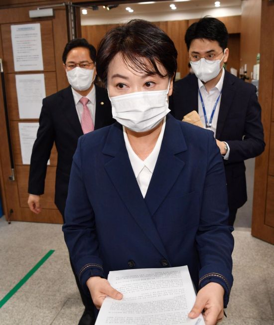 의원직, 대선 예비후보 사퇴를 선언한 국민의힘 윤희숙 의원이 27일 오후 서울 여의도 국회 소통관에서 부친의 땅투기 의혹 관련 기자회견을 한 뒤 소통관을 나서고 있다. 2021.8.27 [이미지출처=연합뉴스] |