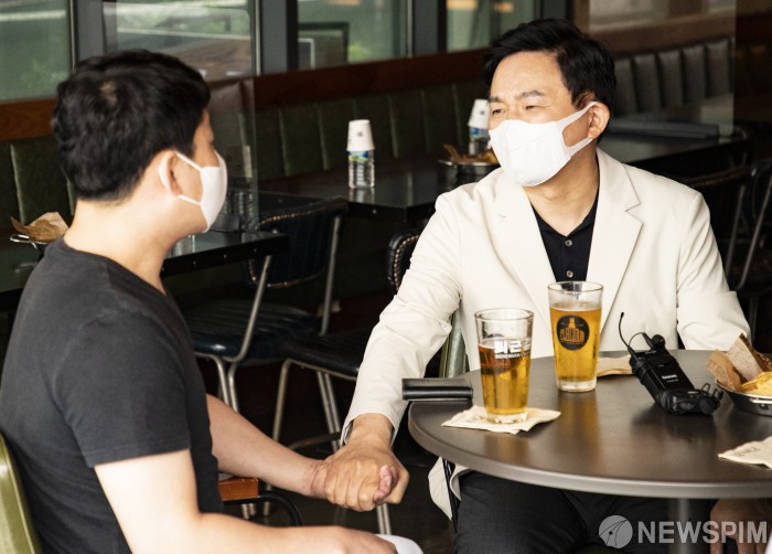 [서울=뉴스핌] 국회사진취재단 = 원희룡 국민의힘 예비후보가 29일 서초구 남부순환로 호프집에서 자영업자들과 간담회를 갖고 코로나 장기화로 인한 자영업자들의 고충에 대해 이야기를 나누고 있다. 2021.08.29 photo@newspim.com