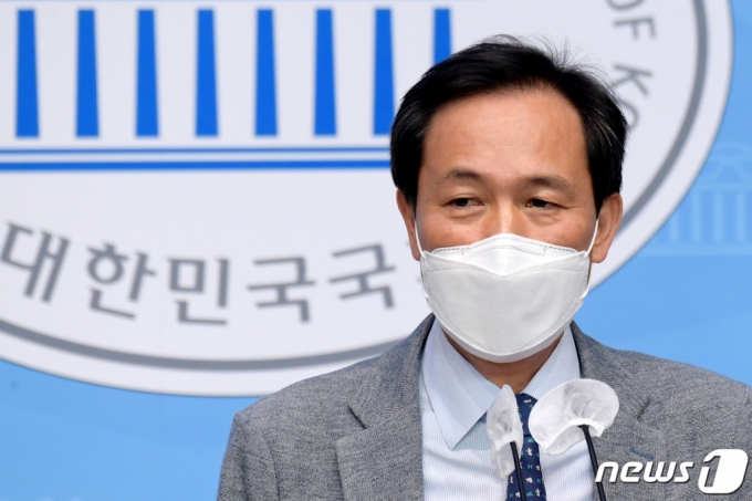(서울=뉴스1) 구윤성 기자 = 우상호 더불어민주당 의원이 8일 오후 서울 여의도 국회 소통관에서 권익위의 부동산 투기 의혹 조사 결과와 관련 입장을 발표하고 있다. 2021.6.8/뉴스1 |