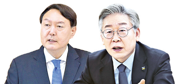 차기 대선후보 적합도 조사에서 이재명(오른쪽) 경기지사와 윤석열 전 검찰총장이 여전히 각축을 벌이고 있다는 조사결과가 30일 나왔다. (사진=이데일리DB) |