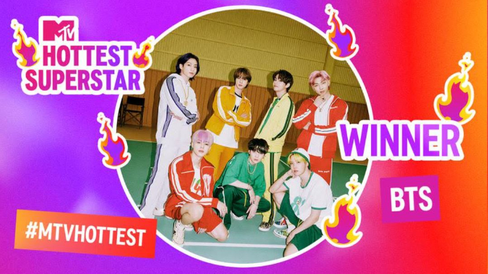 영국 MTV는 29일(현지시간) 공식 홈페이지를 통해 "방탄소년단이 지난 23일까지 진행된 투표에서 총 1930만 표를 얻어 'MTV 핫티스트 슈퍼스타 2021'(MTV's Hottest Superstar 2021)에서 1위를 차지했다"고 전했다.