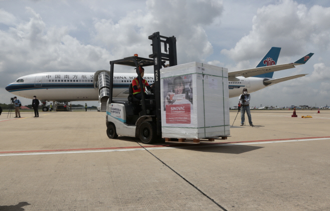 북한이 국제백신공동구매 프로젝트인 코백스(COVAX)가 배정한 중국산 신종코로나바이러스 감염증(코로나19) 백신을 다른 나라에 재배분하라고 요청했다고 로이터통신 등이 1일(현지시간) 보도했다. 사진은 지난달 31일 캄보디아 프놈펜 국제공항에서 중국 시노백 코로나19 백신 하역 작업이 진행되는 모습./사진=프놈펜 신화=연합뉴스 |