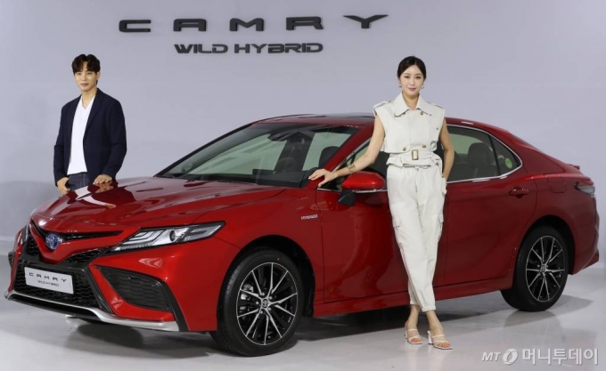 토요타코리아가 18일 오전 서울 성동구 AP어게인에서 '2022년형 뉴 캠리'를 선보이고 있다. '뉴 캠리'는 하이브리드와 가솔린 두 가지 파워트레인으로 출시되며 가격은 3669만원부터 4357만원이다. /사진=이기범 기자 leekb@ |