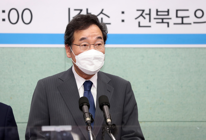 더불어민주당 대권주자인 이낙연 전 대표가 10일 오후 전북도의회 브리핑룸에서 기자회견을 열어 '고발 사주 의혹'에 대한 특검과 국정조사를 촉구하고 있다. 연합뉴스 |
