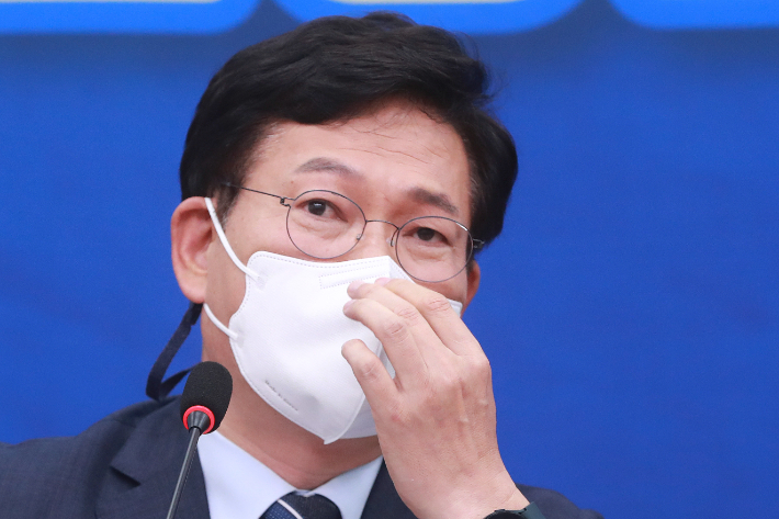 송 대표는 경선 후 취재진과 만난 자리에서 "예상한 대로 사퇴에 대한 배경 등 이야기를 들었다"며 주로 "이야기를 들었다"고 밝혔다.