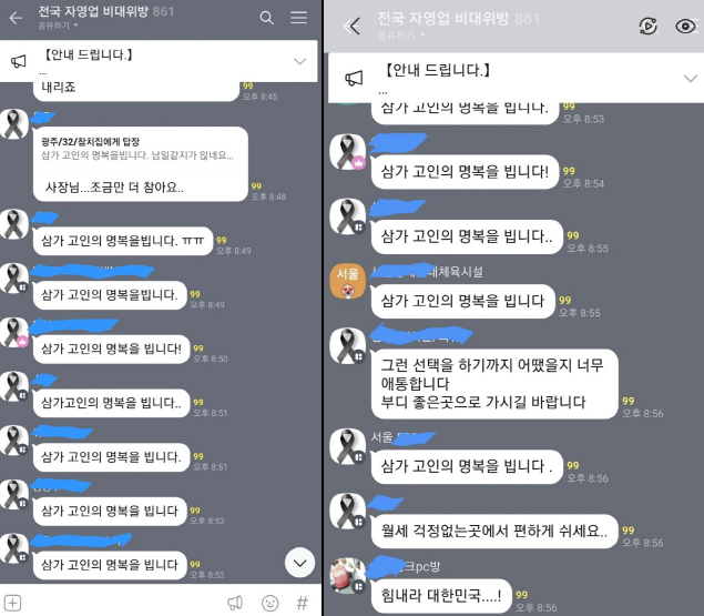 잇따라 극단적 선택을 한 자영업자(소상공인)을 기리는 온라인 추모행렬이 이어지고 있다.