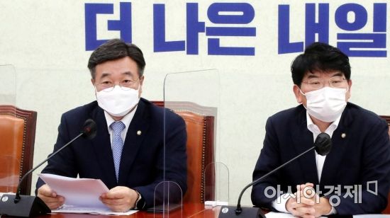 윤호중 더불어민주당 원내대표가 16일 국회에서 열린 원내대책회의에 참석, 모두발언을 하고 있다./윤동주 기자 doso7@ |