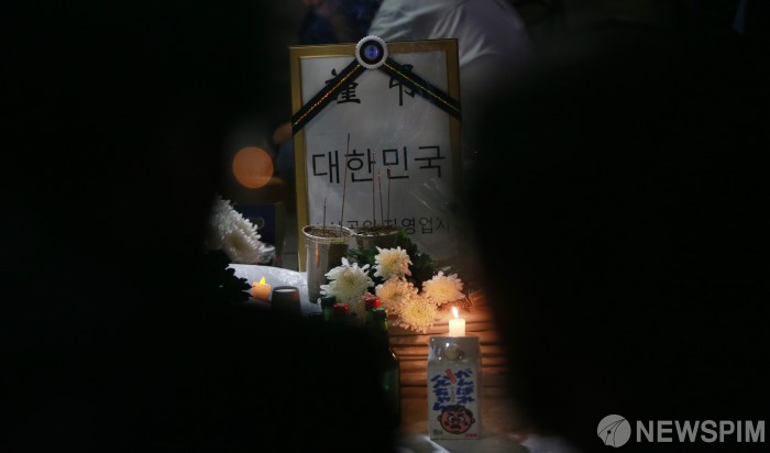 [서울=뉴스핌] 이형석 기자 = 전국자영업자비상대책위원회가 16일 오후 9시께 서울 여의도 국회의사당역 인근에 합동 분향소를 마련했다. 2021.09.16 leehs@newspim.com