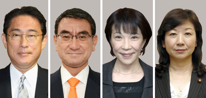 NHK 등 일본 언론에 따르면 이날 자민당 총재 선거에는 고노 다로 행정개혁 담당상과 기시다 후미오 전 자민당 정조회장, 다카이치 사나에 전 총무성 장관, 노다 세이코 자민당 간사장 대행 등 모두 4명이 입후보했다.