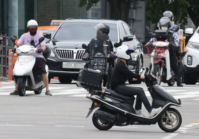 이달 1일 서울 시내에서 배달원들이 오토바이를 타고 이동하고 있다.(사진=연합뉴스) |