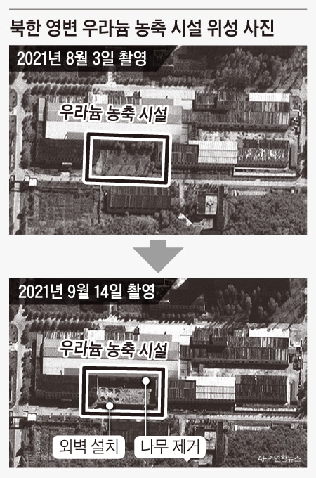 북한 영변 우라늄 농축 시설 위성 사진 |