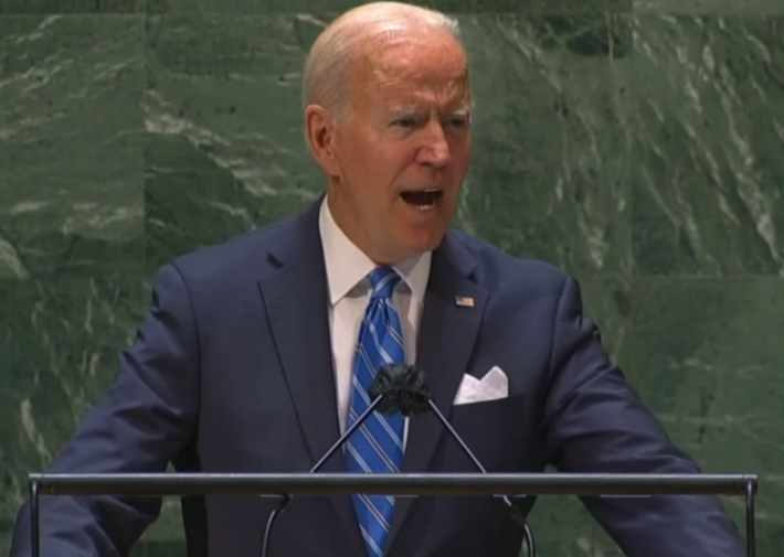 21일(현지시간) 미국 뉴욕 유엔총회에서 연설하고 있는 조 바이든 미국 대통령. 유튜브 캡처 |