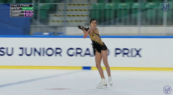 '13세 소녀' 신지아(영동중)는 총점 178.65점을 받아 6위까지 올랐다. 쇼트프로그램에서 7위였던 신지아는 프리스케이팅에서 '클린 연기'로 최종 6위를 기록했다.