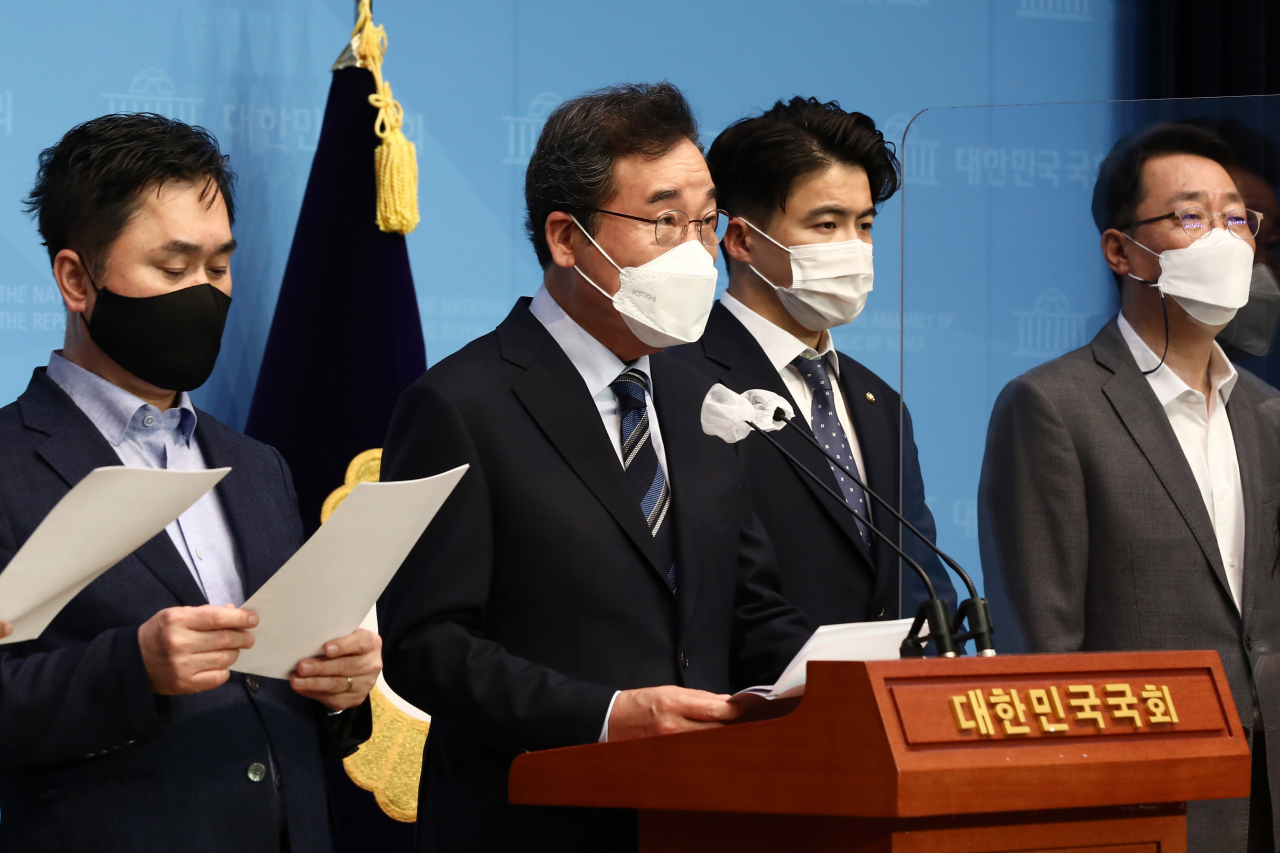 더불어민주당 이낙연 대선 경선 후보가 28일 국회 소통관에서 기자회견을 열고 '위드코로나 소상공인 특별대책'을 발표하고 있다. [연합] |