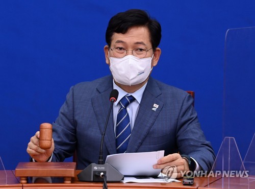 (서울=연합뉴스) 강병철 홍규빈 기자 = 더불어민주당 송영길 대표는 29일 국민의힘을 탈당한 곽상도 의원 아들의 화천대유 50억원 퇴직금과 관련, "국민의힘 이준석 대표는 원내대표에게 지시해서 제명 처리를 할 수 있도록 구체적인 실천 조치를 취해줄 것을 바란다"고 말했다.