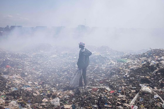 지난 7월 24일 케냐 나이로비의 단도라 비공식 정착촌 근처의 쓰레기 매립장. 쓰레기가 타면서 발생한 미세먼지 등 대기오염으로 인해 뿌옇다. AFP=연합뉴스 |