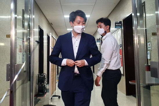 국민의힘 이준석 대표가 30일 밤 서울 여의도 국회에서 긴급 최고위원회의를 마치고 나오고 있다.(사진=연합뉴스) |