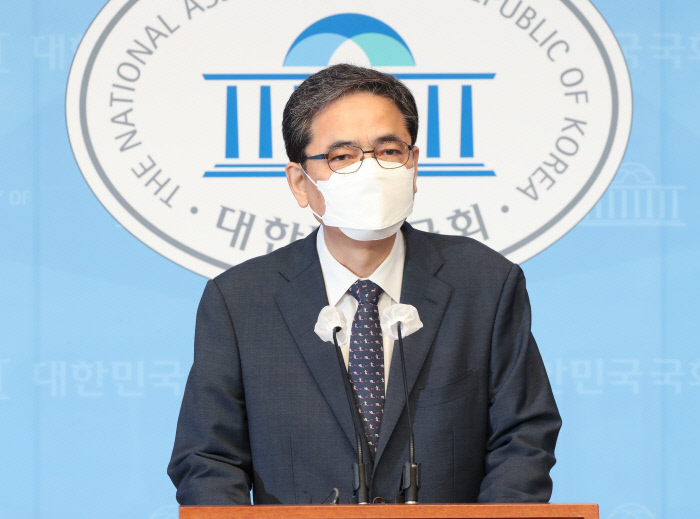 곽상도 무소속 의원이 아들의 ‘화천대유 퇴직금 50억원’ 논란과 관련 2일 오전 서울 여의도 국회 소통관에서 국회의원직을 사퇴한다고 밝히고 있다. 연합뉴스 |
