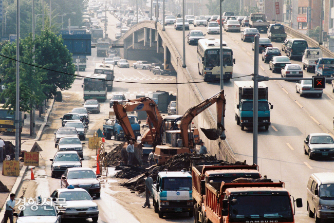 서울 한남동의 교통정체 모습. 경향신문 자료사진. |