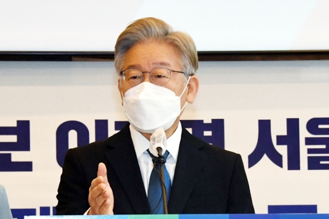 이재명 더불어민주당 대선 경선 후보가 4일 서울 중구 커뮤니티 하우스 마실에서 서울공약발표 기자간담회를 하고 있다. 뉴시스 |