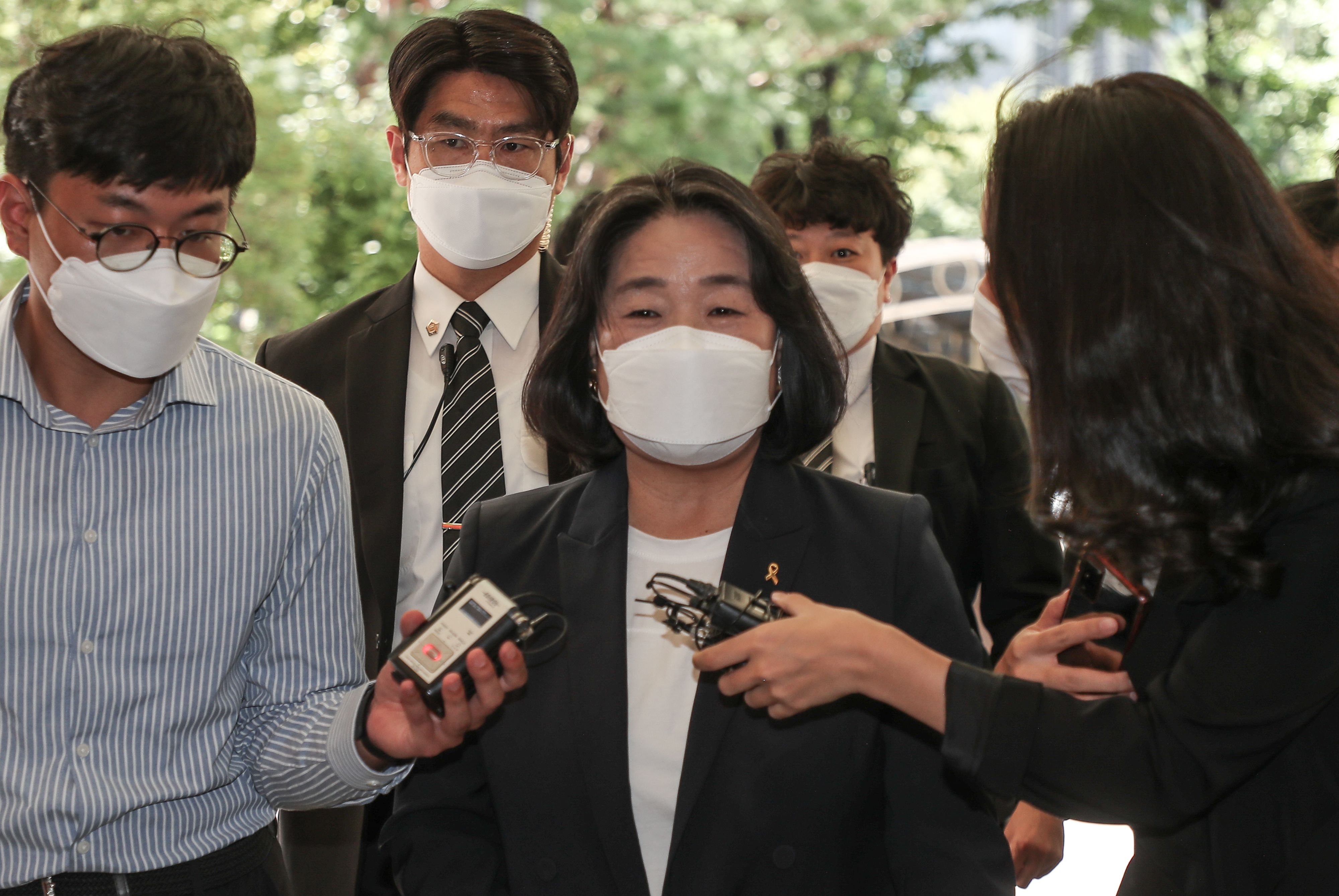 정의기억연대 후원금 유용 혐의 등으로 기소된 무소속 윤미향 의원이 9월 17일 오후 서울 마포구 서부지법에서 열리는 2차 공판에 출석하고 있다. /연합뉴스 |