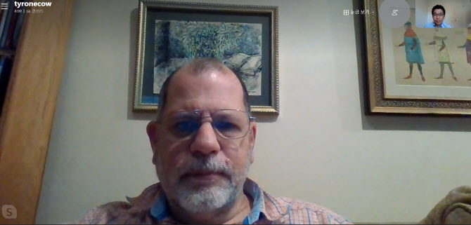 타일러 코웬 미국 조지메이슨대 경제학과 교수가 지난달 27일 오후(현지시간) 이데일리와 화상으로 인터뷰를 하고 있다. (사진=김정남 특파원) |