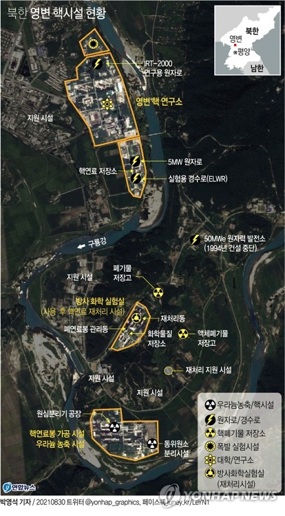 북한은 핵물질을 얻기 위해 플루토늄과 고농축 우라늄을 각각 생산하는 시설을 영변에 두고 있다.