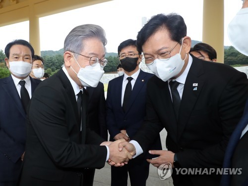 악수하는 이재명-송영길 |