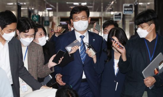 송영길 더불어민주당 대표가 지난 13일 서울 여의도 국회에서 열린 비공개 당무위원회의에 참석하고 있다. [이미지출처=연합뉴스] |