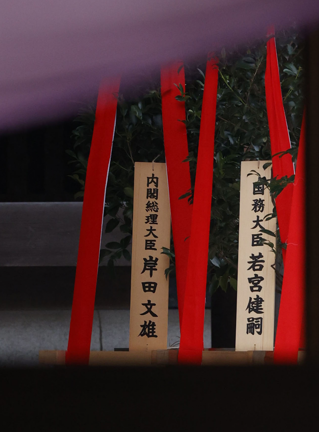 앞서 기시다 총리는 이날 취임 후 처음 맞는 야스쿠니신사의 추계 예대제(例大祭·제사)에 ‘내각총리대신 기시다 후미오’ 명의로 공물을 봉납했다.