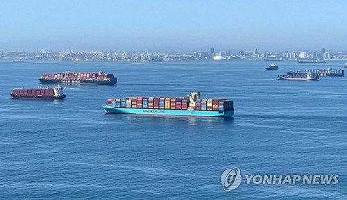 미국 로스앤젤레스·롱비치항 입항을 기다리는 컨테이너선들 |
