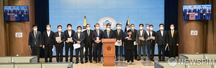 [서울=뉴스핌] 이형석 기자 = 더불어민주당 광주-전남-전북지역 의원들이 20일 국회 소통관에서 윤석열 국민의힘 대선 경선 후보의 '전두환 전 대통령이 정치는 잘했다' 발언에 대해 즉각 대선 후보직 사퇴 촉구 기자회견을 갖고 있다. 윤 후보는 19일 부산 해운대갑 당원협의회 사무실에서 “전두환 전 대통령이 잘못한 부분이 있지만 군사 쿠데타와 5·18 광주 민주화 운동만 빼면 정치는 잘했다고 말하는 분들이 많다”고 말했다. 논란이 확산되자 윤 후보는 ‘권한 위임’이라는 측면에서 배울 점이 있다는 취지였다고 해명했다. 2021.10.20 leehs@newspim.com