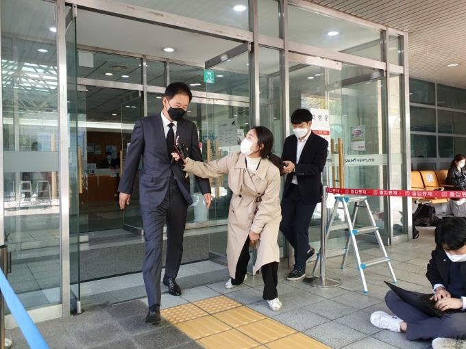 박근혜 전 대통령의 측근인 유영하 변호사가 29일 오전11시쯤 노태우 전 대통령 빈소에 조문한 후 장례식장을 빠져나가고 있다./사진=홍재영 기자 |