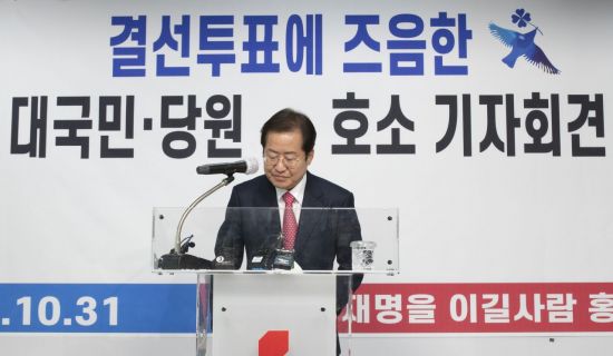 홍 의원은 서울 여의도 국민의힘 중앙당사에서 '결선투표에 즈음한 대국민·당원 호소 기자회견'에서 "박 전 대통령의 출당조치에 대해서도, 비록 그것이 문재인 정권의 좌파개헌을 막기 위한 어쩔 수 없는 조치였다 해도, 당원 여러분의 마음을 아프게 한 데 대해 진심으로 용서를 구한다"고 말했다. 아울러 "대통령이 되어 특별사면권을 갖는 즉시 두 전직 대통령을 사면하겠다"고도 말했다.