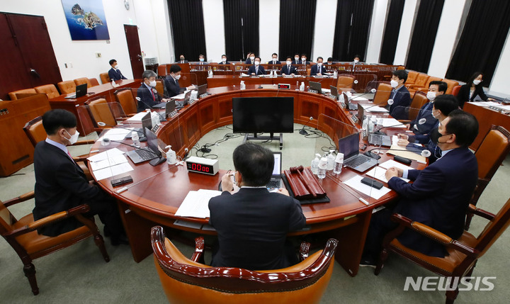 [서울=뉴시스] 최동준 기자 = 1일 서울 여의도 국회에서 열린 정보위원회의 경찰청에 대한 국정감사에서 김창룡 경철창장이 출석해 있다. (공동취재사진) 2021.11.01. photo@newsis.com