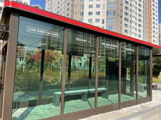 1억4000만원이 투입된 미세먼지 안심 버스승강장은 미세먼지는 물론 매연, 한파, 호우 등을 피할 수 있는 밀폐형 쉼터공간으로 조성됐다.