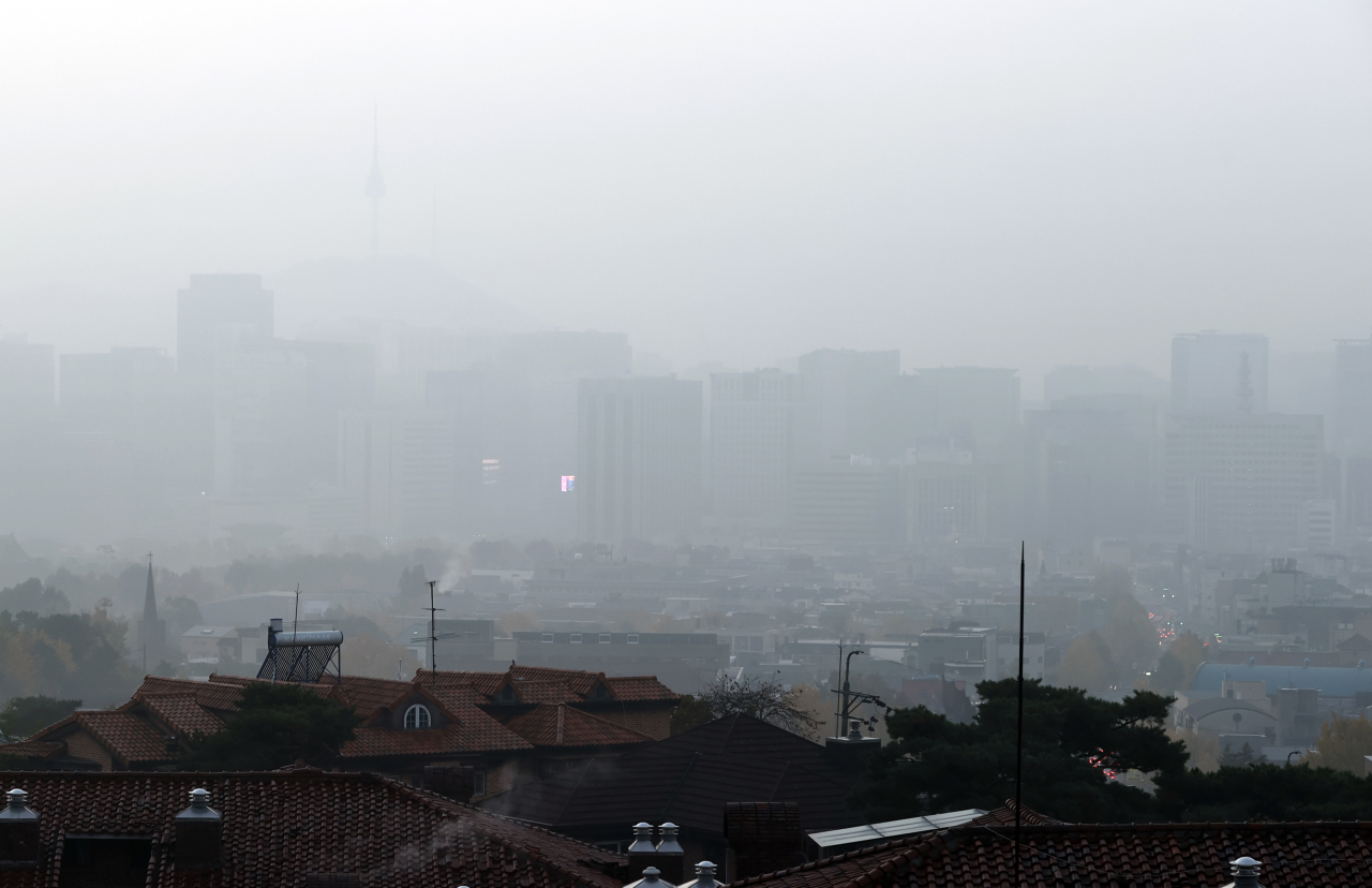 초미세먼지가 ‘나쁨’을 기록한 5일 오전 서울 시내가 뿌옇다. [연합] |