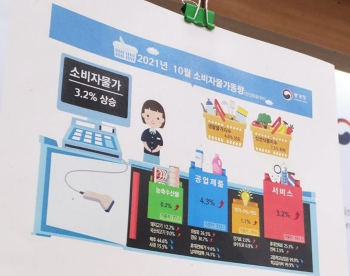 최근 통계청이 발표한 10월 소비자물가 상승률이 작년 동월 대비 3.2%로 9년 9개월 만에 최고치를 기록한 가운데 빵·곡물 가격은 6.2%, 식용유지는 8.4% 뛰었다.