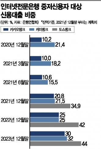 인터넷은행 관계자는 "인터넷은행들도 수익이 있어야 중·저신용자 대출을 확대할 수 있다"며 "대출 총량규제에서 중저신용자대출과 대환대출(대출 갈아타기) 등을 제외하는 방법을 고민해 봐야 한다"고 지적했다.