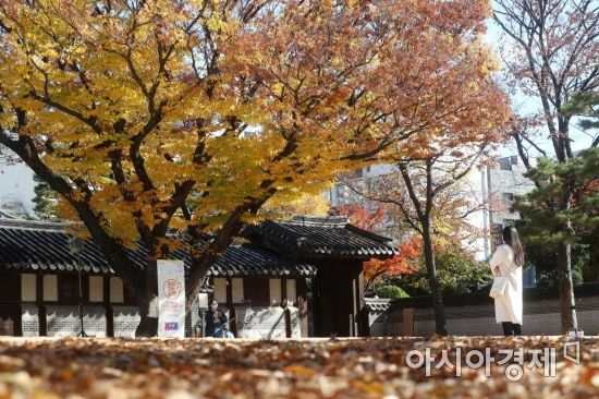 초겨울 날씨를 보인 12일 서울 종로구 운현궁에서 시민들이 늦가을 정취를 만끽하고 있다. /문호남 기자 munonam@ |