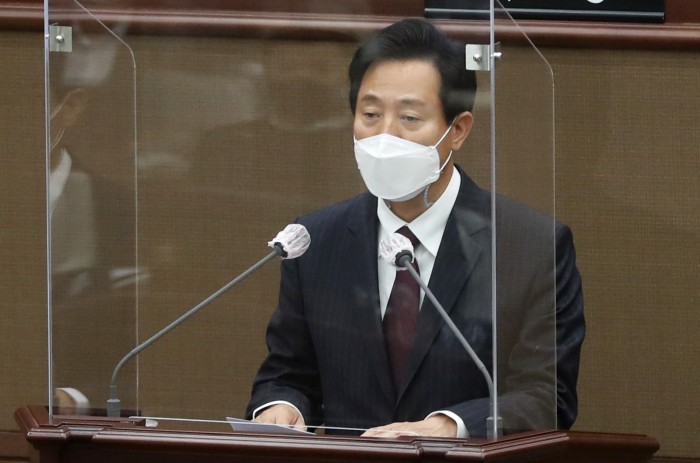 [서울=뉴스핌] 정일구 기자 = 오세훈 서울시장이 서울시의회에서 발언을 하고 있다. mironj19@newspim.com |