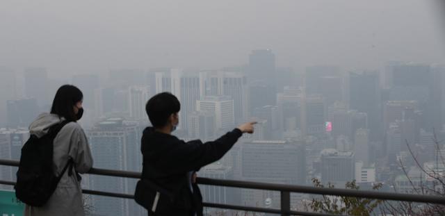 미세먼지와 초미세먼지 모두 나쁨으로 나타나고 있는 19일 오후 서울 중구 남산에서 바라본 서울 시내가 뿌옇게 보이고 있다. 뉴시스 |