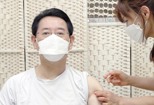 (무안=연합뉴스) 여운창 기자 = 신종코로나바이러스 감염증(코로나19) 돌파 감염을 막기 위해 김영록 전남지사는 20일 전남 무안군 남악신도시 소재 한 의원에서 화이자 백신 추가접종을 마쳤다.
